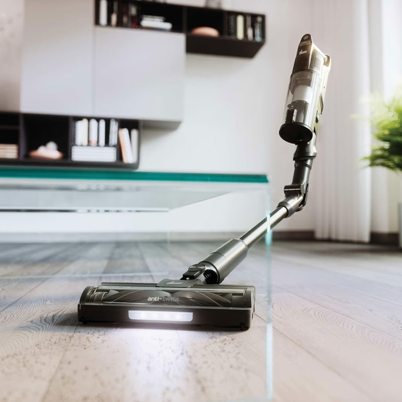 Aspirateur Balai HOOVER - Utilisation: Sans Fil - Batterie amovible: Li-Ion - Autonomie: jusqu'à 45 min - Temps de charge: 5h - Indicateur de charge - Eclairage frontal LED - Puissance: 165 Watts - Contrôle de puissance: 2 niveaux et turbo - Capacité de Bac: 0.7 Litre - Tension: 14.4 V - Technologie à cyclone unique - Système de filtration: Filtre en mousse - Facile à vider - Poignée souple - Système de dégagement rapide - Position de stationnement verticale - Dimensions: H x L x P: 1110 x 250 x 163,5 mm - Couleur: Gris et Vert - Garantie: 1an