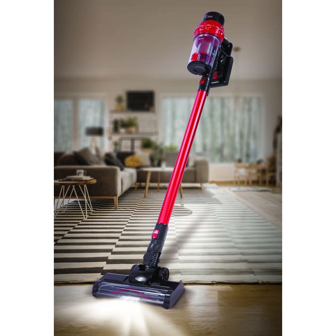 Moteur puissant lithium-ion 22,2 V avec une puissance d'aspiration élevée - Technologie Cyclone pour une aspiration puissante - Utilisation portable et verticale 2 en 1 - Puissance d'aspiration réglable en 2 étapes - Conception légère et compacte pour un nettoyage peu encombrant et sans effort - Filtres métalliques HEPA et acier inoxydable amovibles et lavables - Capacité poussière 0,8L - Bouton d'évacuation de la poussière facile à une touche - Accessoires : adaptateur de charge, suceur plat, tête de brosse, outil de nettoyage des cheveux avec brosse, outil de montage mural et vis
