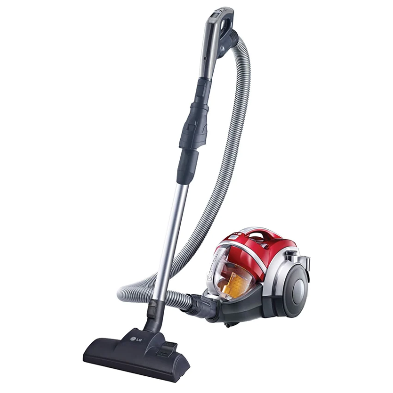 Aspirateur Sans Sac LG Kompressor - Puissance max: 2000 Watts - Puissance d’aspiration: 380 Watts - Capacité de stockage de la poussière: 1.2 x 4 Litre - Technologie déposée de compression de la poussière motorisée - Filtre HEPA 14 - Vidage simple et hygiénique - Type de commande: Glissière de poignée - Niveau de bruit CEI: 78 db - Tuyau: en acier télescopique - Longueur de câble: 8m - Brosse à poussière - Embout plat - Dimensions: 435 x 282 x 258 mm - Poids: 9.4 kg - Couleur: Rouge - Garantie: 1 an