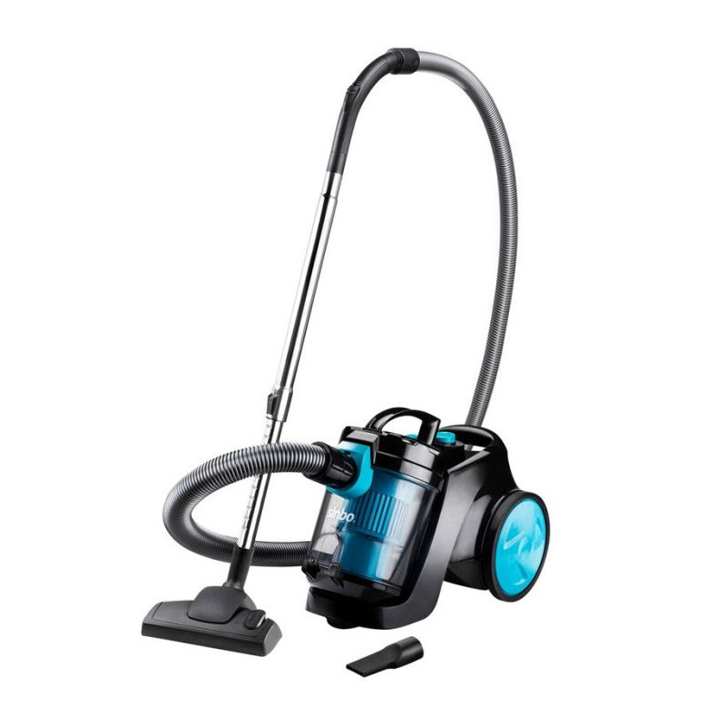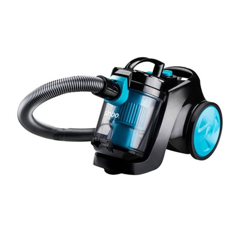 Aspirateur Sans Sac SINBO - Puissance: 350 Watts - Capacité du bac à poussière: 3.5 Litres - Filtre de sortie d'air - Filtre de protection du moteur - Filtre HEPA amovible - Système de filtre multi-cyclone - Enrouleur de câble automatique - Position de stationnement: Horizontale - Longueur de câble: 5 m - Rayon de travail: 7,5 m - Accessoires: Appareil au sol, Appareil à coin de bord, Tuyau métallique télescopique - Couleur: Bleu - Garantie: 1an