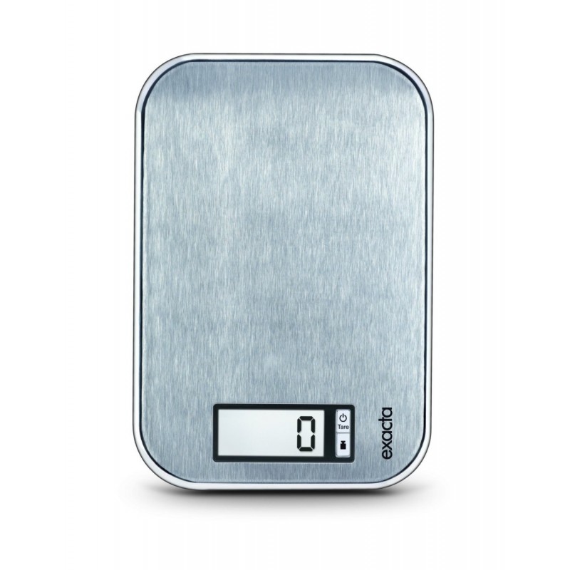 Balance de Cuisine Electronique EXACTA - Ecran LCD - Graduation: 1 gr - Capacité de charge: 5 Kg - Matière: Acier inoxydable - Fonction tare avec capteur - Dimensions : 14,5 x 21 x 1,5 cm - Couleur: Silver-Garantie:1 an