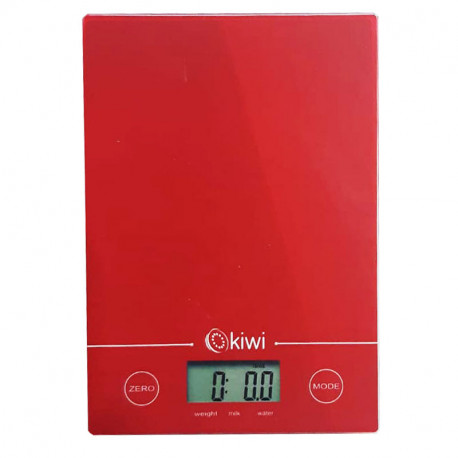 Balance de Cuisine KIWI - Ecran LCD - Graduation: 1 gr - Capacité de charge: 5 Kg - Equipé d'une haute précision "tache de calibre" capteur et processeur élevé de capacité pour assurer la pesée exactitude - Alimentation: Piles - Couleur: Rouge