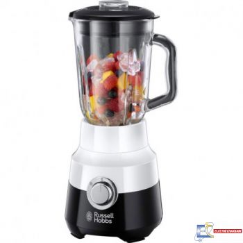 Blender RUSSELL HOBBS Horizon - Puissance: 650 W - Capacité: 1, 5 L - Nombre de vitesse: 2 Vitesses - Alimentation: 220 - 240 V - 50-60 Hz - Vitesse maximum: 22000 trs/min - Finition élégante rouge intense associée à des touches de Noir - Bol en verre robuste gradué, pour des préparations chaudes ou froides - 6 lames en acier inoxydable, efficace sur la glace pilée - Couleur: Noir & Blanc - Garantie: 1 an