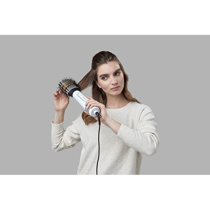 Brosse Soufflante REMINGTON Hydraluxe - Puissance: 1200 Watts - Nombre de vitesse: 2 vitesses - Niveau de température: 3 niveaux - Technologie ionique - Fonction Hydracare - Air frais pour fixer la coiffure - Brosse ovale à poils mixtes - Revêtement Moisture Lock - Embout froid - Couleur: Blanc - Garantie: 2ans