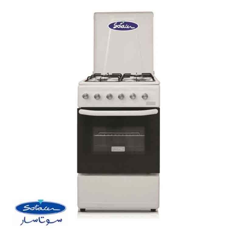 Cuisinière Sotacer TGG1000S - 4 Feux - Table de travail Inox - Grilloir - Couvercle en verre - Porte four double vitrage - Dimensions: 50 x 50 cm - Garantie 2 ans