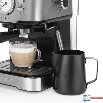 Cafetière Expresso PRINCESS - Puissance: 1100 Watts - Capacité: 1.5 Litre - Nombre de tasses: 2 tasses - Pression: 20 bars - Matériel: Acier inoxydable - Le porte-filtre avec 3 filtres en inox - Panneau de contrôle avec Système de virage - Niveau d'eau visible - Réservoir d'eau amovible - Avec Thermomètre - Type de café : molu, Buse vapeur et eau chaud, expresso et cappuccino – Nespresso - Arrêt automatique - Couleur: Inox - Garantie: 1 an