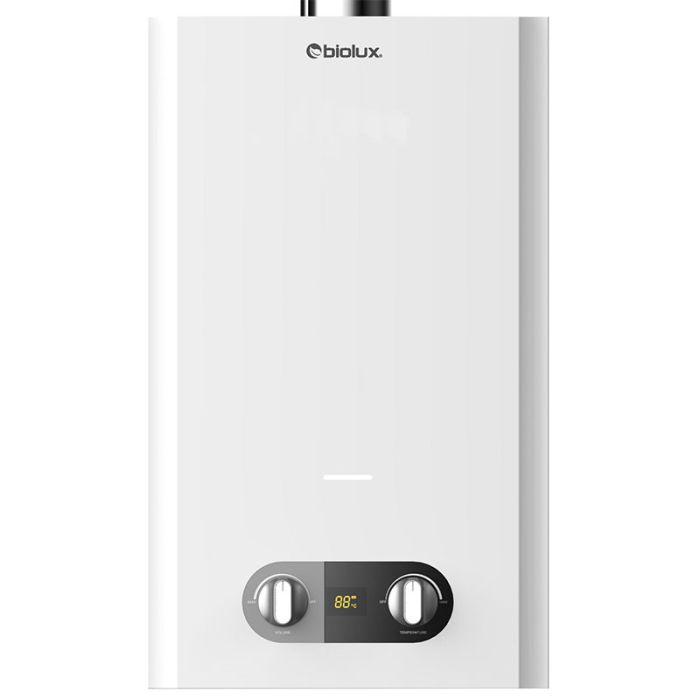 Chauffe Bain BIOLUX - Type de Gaz: Gaz Bouteille - Débit d'eau Chaude: 10 Litres/min - Réglage facile de la température de l’eau - Forme compacte avec un design élégant - Couleur: Blanc - Garantie: 1 an
