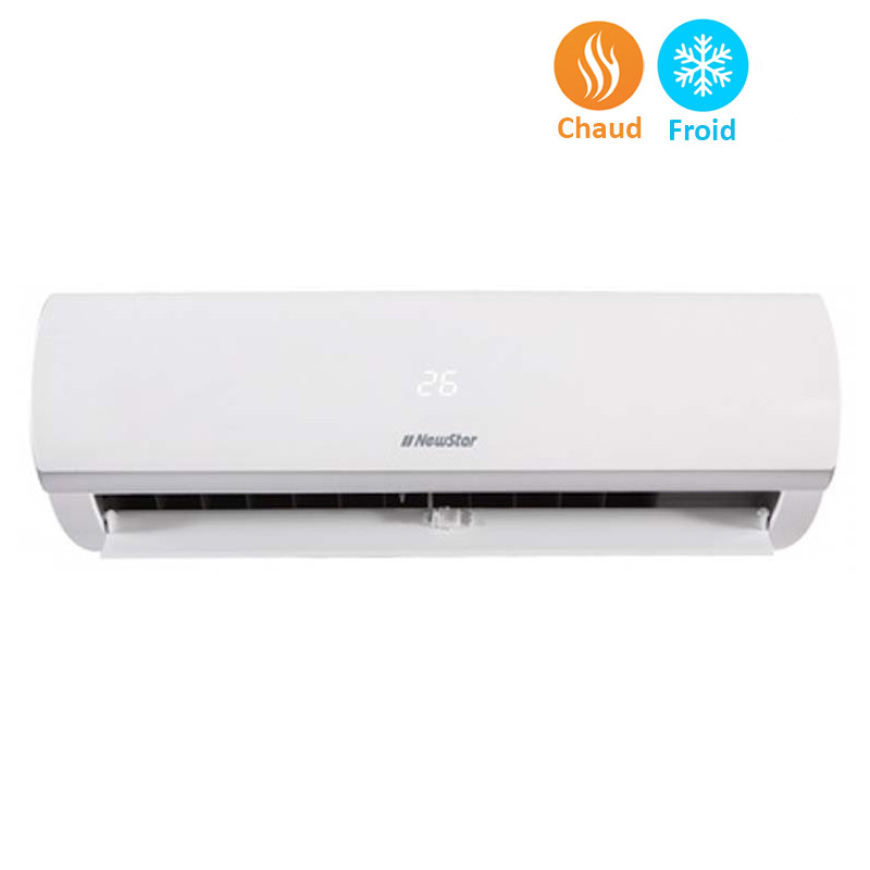 Climatiseur Inverter NEWSTAR - Capacité: 9000 BTU - Mode: Chaud/Froid - Gaz réfrigérant: R410A - Afficheur LED - Forte déshumidification - Ailette en aluminium hydrophile - Turbo opération - Redémarrage automatique - Nettoyage automatique - Minuterie programmable 24 heures - Alimentation: 220 -240 / 50Hz - Couleur : Blanc - Garantie: 3 ans