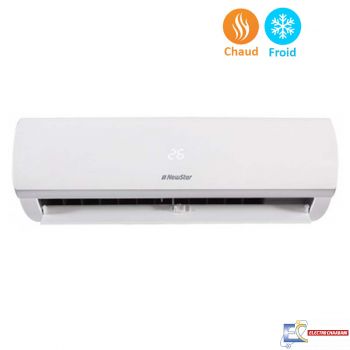 Climatiseur Newstar - Capacité : 18000 BTU - Mode : Chaud & Froid - Classe énergétique : 2 - Gaz réfrigérant: R410A - Afficheur LED- Mode veille - Redémarrage automatique- Nettoyage automatique Tube de cuivre - Minuterie programmable 24 heures - Ailette en aluminium hydrophile - Forte déshumidification -Turbo opération - Alimentation: 220 -240 / 50Hz – Dimension unité intérieure (HxLxP): 910x206x294 cm - Dimension unité extérieure (HxLxP) cm: 853x602x349 - Couleur : Blanc - Garantie : 3 ans
