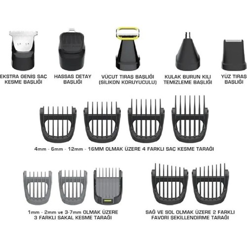 Coffret de tendeuse FAKIR pour homme EXECUTE 2 BLADE - 15 en un lavable - facile a utiliser humide ou sec - la possibilité d'utiliser le sans file jusqua 60 minutes - batterie au lithium -ion 500 mah - tension du moteur DC 3.2V - charge rapide 2 heurs avec prise de charge magnétique - indicateur de charge de lumière LED - lame de coupe double en acier inoxydable (effet ciseaux ) - lavable IPX5 - 6 différentes tètes de coupe : tendeuse de cheveux extra large - tete de coupe barbe - tete de rasage corporelle (avec protecteur en silicone) - la tete de nettoyage des cheveux des oreilles et du nez - tete de rasage de visage - tete de détail sensible - 4 peignes de coupe de cheveux différents comme 4 mm 6 mm 12 mm 16 mm - 3 peignes de coupe de barbe différents 1 mm 2 mm et 3 - 7 mm - 2 peignes de coiffage différents pour les cotes droit et gauche - peigne de coiffeur - brosse de nettoyage - huile d'entrtien - câble de charge avec entrée USB - sac de voyage antichoc en PU .