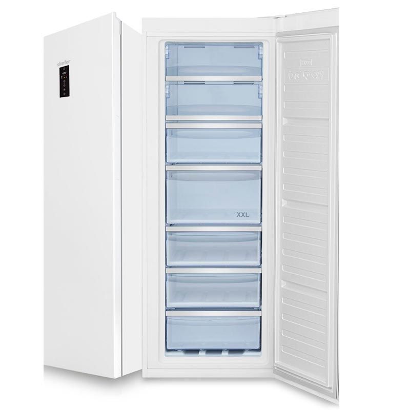 Congélateur Vertical SIMFER - Systéme de refroidissement: NoFrost - Volume Net: 290 Litres - Mode double (Réfrigérateur ou congélateur) - Nombre de tiroirs de congélation: 7 tiroirs - Classe énergétique: A - Afficheur externe - Couleur: Blanc - Garantie: 2 ans