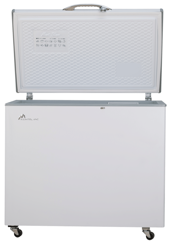 Congélateur Horizontal MontBlanc - Capacité 300L - Contrôle visuel de la température - Equipé d’une serrure - Thermostat réglable - Evacuation eau de dégivrage - Super isolation - Couleur Blanc - Dimensions 94 x 108 x 75 cm - Garantie 2 ans