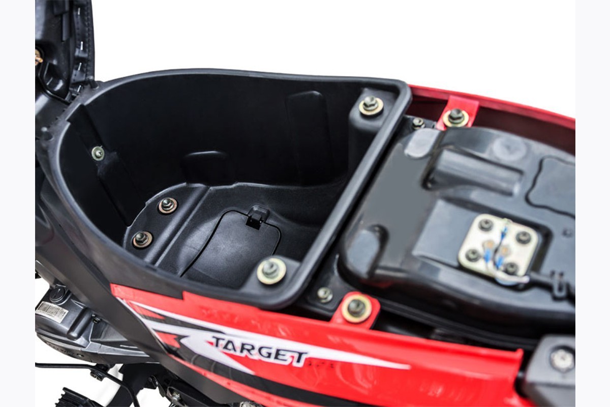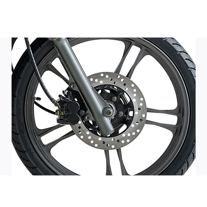 Ses roues en alliage moulé de 17 pouces, qui contiennent du caoutchouc adhérent et, à l'avant, un frein à disque unique pour des arrêts rapides, contribuent à donner au Target 125 l'apparence d'un vélo de rue pleine grandeur.