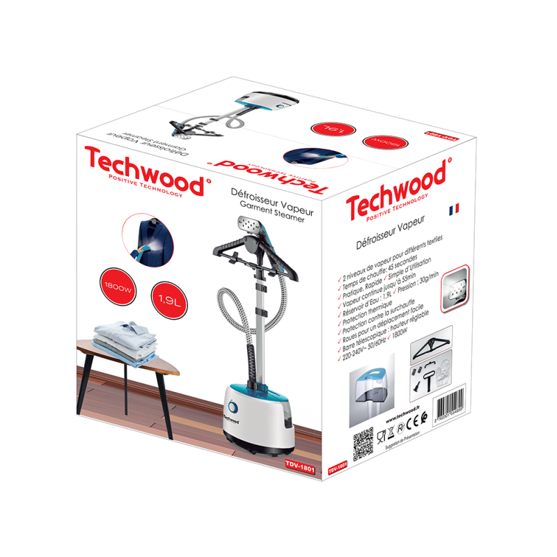 2 niveaux de vapeur pour différents textiles - Temps de chauffe: 45 secondes - Pratique, Rapide - Simple d'utilisation - Vapeur continue jusqu'à 55 min - Réservoir d'eau: 1.9L - Débit vapeur: 30g/min - Protection thermique - Protection contre la surchauffe - Roues pour un déplacement facile - Barre télescopique: hauteur réglable -220-240V ~ 50/60Hz - 1800W - Garantie : 1 an .