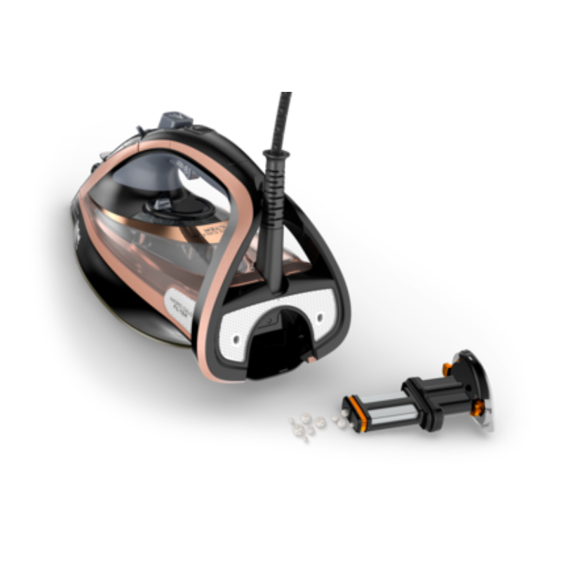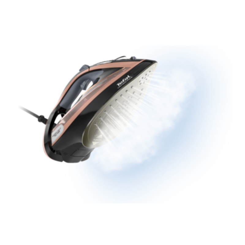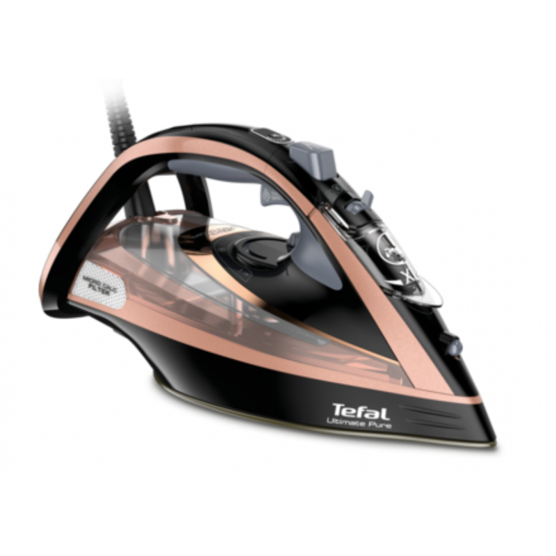 Fer à Vapeur Tefal Ultimate Pure - Puissance: 3200 W - Sortie de vapeur continue: 60 g/min - Vapeur verticale - Longueur du cordon d'alimentation: 2,5 m - Capacité du réservoir d'eau: 350 ml - Capacité du réservoir d'eau (oz): 350 oz - Trou de remplissage d'eau: Extra large - Fonction: anti-calcaire intégré - Couleur: Noir & Gold - Garantie: 1 an