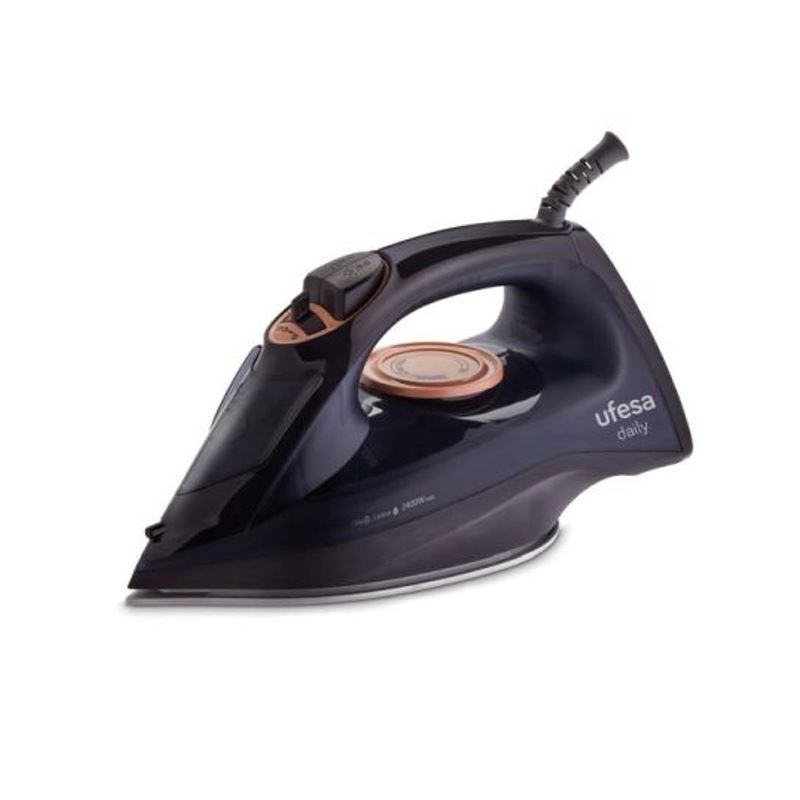 Réf : PV1100C Fer à Vapeur - Puissance: 2400 W - Capacité: 280 ml - Vapeur continue: 30 g/min - Bloc d'Alimentation: réseau électrique - Coup de vapeur: 120 g/min - Ufesa PV1100C Daily Fer à Repasser, 2400 W, Coup de Vapeur Max 120 g, Double Système Anti-Calcaire, Réservoir 280 ML, Repassage Vertical, Base en Céramique, Noir Matériel Type: Céramique Couleur : Noir