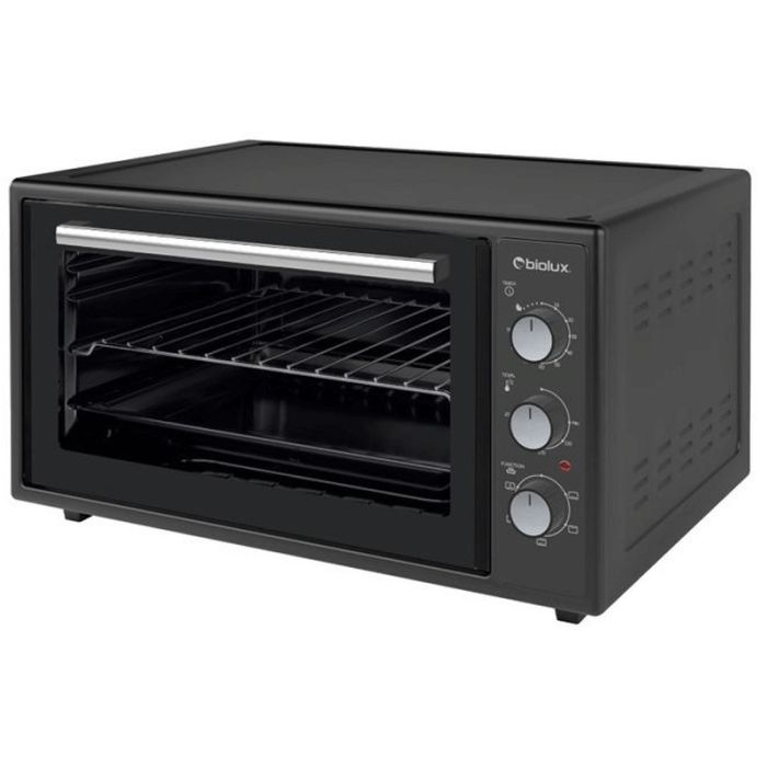 Four Électrique BIOLUX - Volume: 35 Litres - Chaleur tournante - Puissance: 1400 Watts - Température: Réglable de 250° - Minuterie: 90 minutes - 3 modes de fonctionnement haut, bas et combiné - Arrêt automatique - Alimentation 220-240 / 50-60 Hz - Témoin lumineux Marche/Arrêt - Dimensions: 41.6 x 50.5 x 29.8 cm - Couleur: Noir - Garantie: 1an