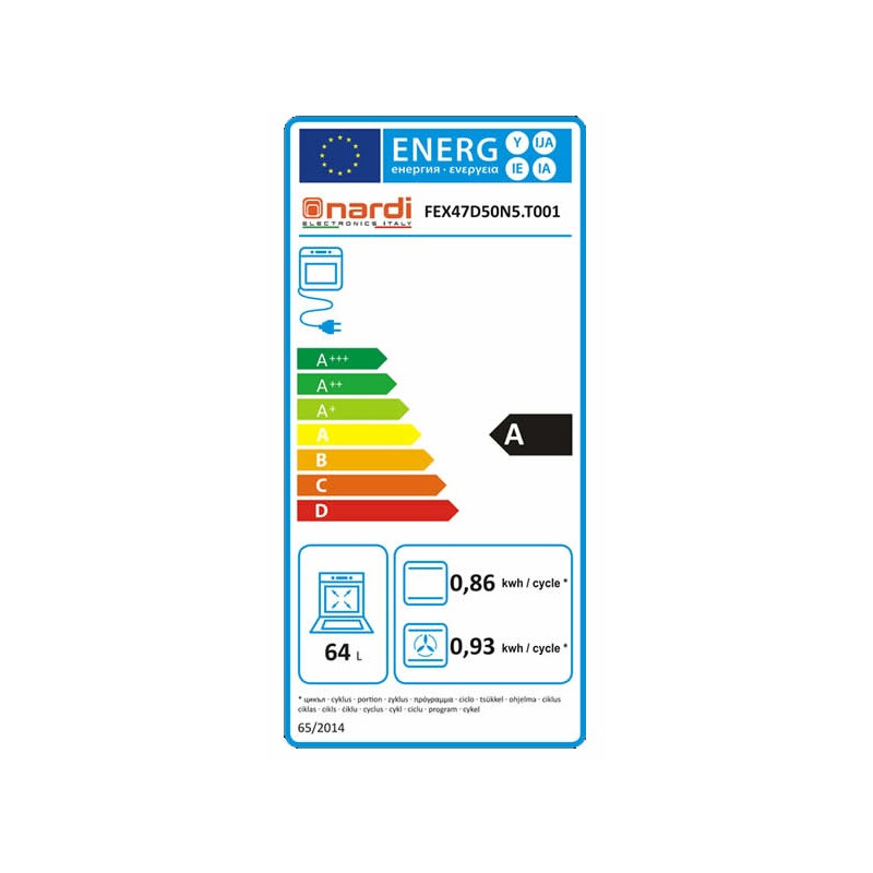 Four Électrique Encastrable Multifonction Numérique Nardi FEX47D50N5 60 cm - Capacité 64 L - 11 Fonctions - Température Maximale: 250°C - Classe énergétique A - Chaleur Tournante - Ecran TFT: Tactile - Porte en verre facile à nettoyer - Porte froide 3 verres - Rail Télescopique - 2 plateaux + Grille - Couleur Noir - Dimensions: 595 x 560 x 598 mm - Dimensions encastré: 543 x 560 x 585 mm - Garantie 2 ans