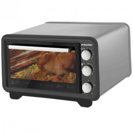 Four Électrique NEWSTAR KF1230 - Puissance: 1300 Watts - Volume: 32 Litres - Minuterie de cuisson Réglable: 90 min avec sécurité automatique - Thermostat réglable: de 50°C à 300°C - Porte à Vitrage Spéciale , résistant à la chaleur - Témoin lumineux Marche / Arrêt - Accessoires Inclus: 1 Plateau émaillé à niveau Réglable , Grille en Acier Inoxydable - Alimentation: 220-240 / 50-60 Hz - Dimensions: 35 x 53,5 x 43 cm - Couleur: Gris