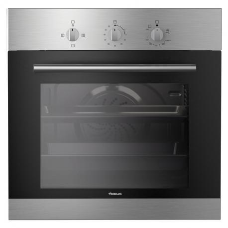 Four Encastrable à Gaz Ventilé Focus F536X - Capacité 58 Litres - Dimensions 60cm - 7 Programmes - Chaleur tournante - Tourne broche - Minuterie - Porte froide - Classe Énergétique A - Couleur Inox - Garantie 2 ans