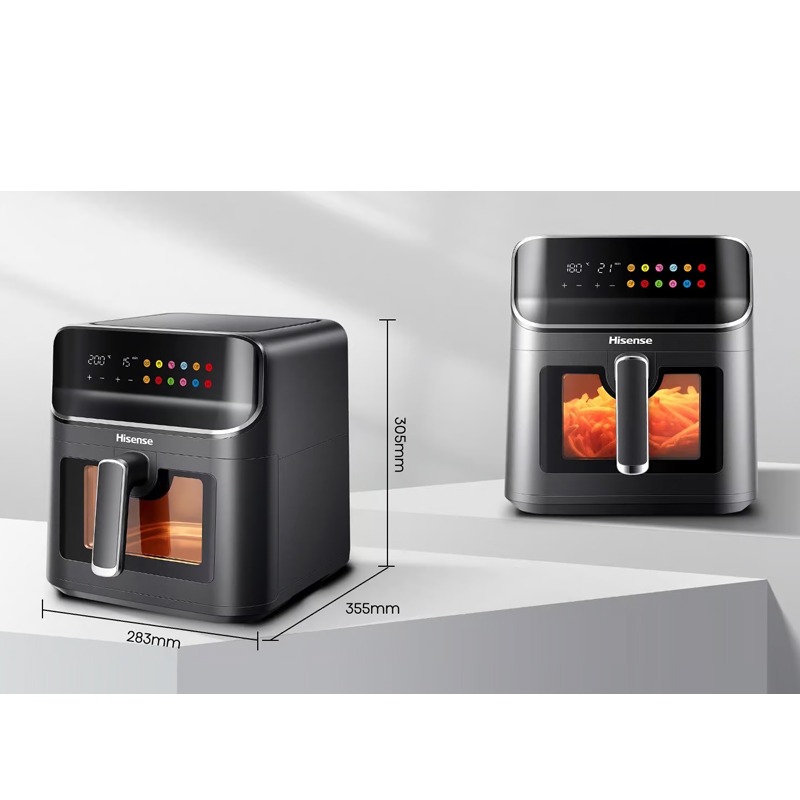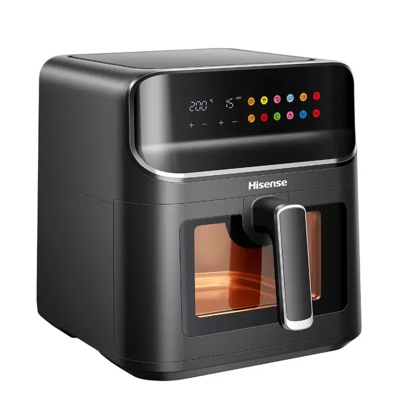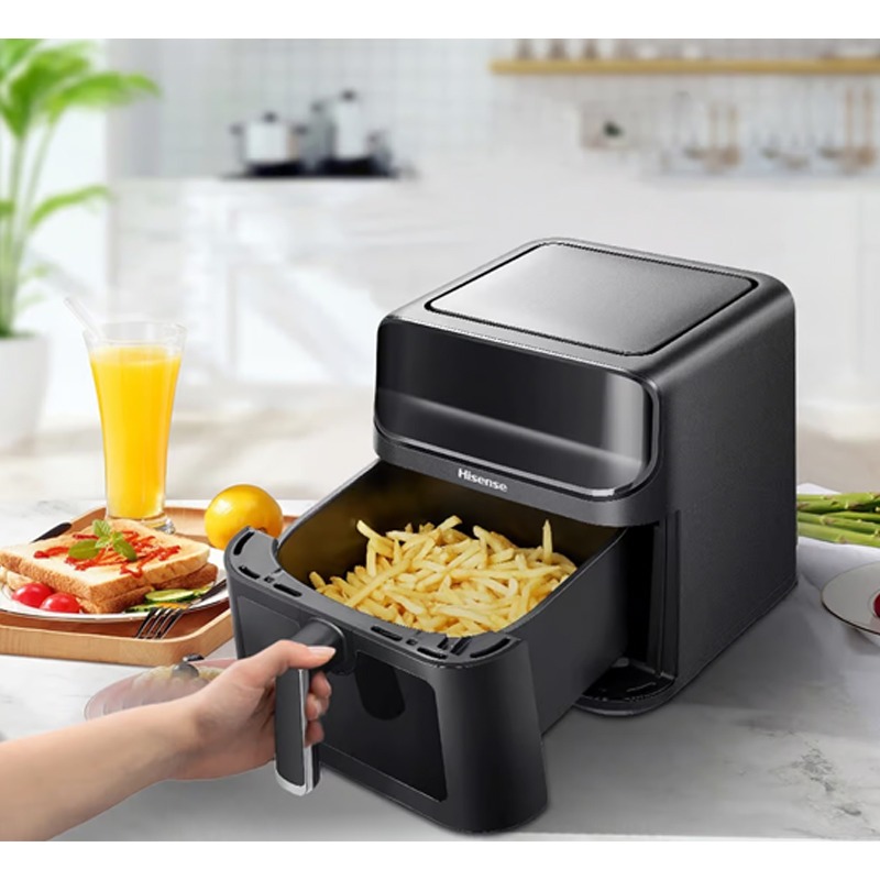 Friteuse Sans Huile HISENSE - Puissance: 1350 Watts - Capacité: 6.7 Litres - Grande fenêtre transparente - Température Réglable: 80 à 200 °C - Minuterie réglable: 60 minutes - Panneau commande tactile - Circulation d'air chaud rapide à 360° - Revêtement anti-adhésif - Élégant et moderne - Facile à nettoyer - Couleur: Noir - Garantie: 1an