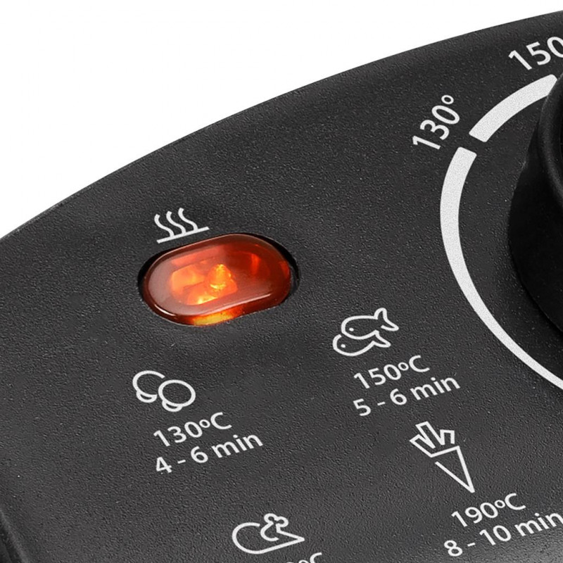 Friteuse Capacité 3L - Puissance 2000 Watts - Température maximale 190 °C - Corps inox - Cuve intérieure amovible - Zone froide - Pièces compatibles avec le lave-vaisselle - Pieds antidérapants - Capacité 0.6Kg - Protection contre la surchauffe - Thermostat réglable - Garantie 1 an