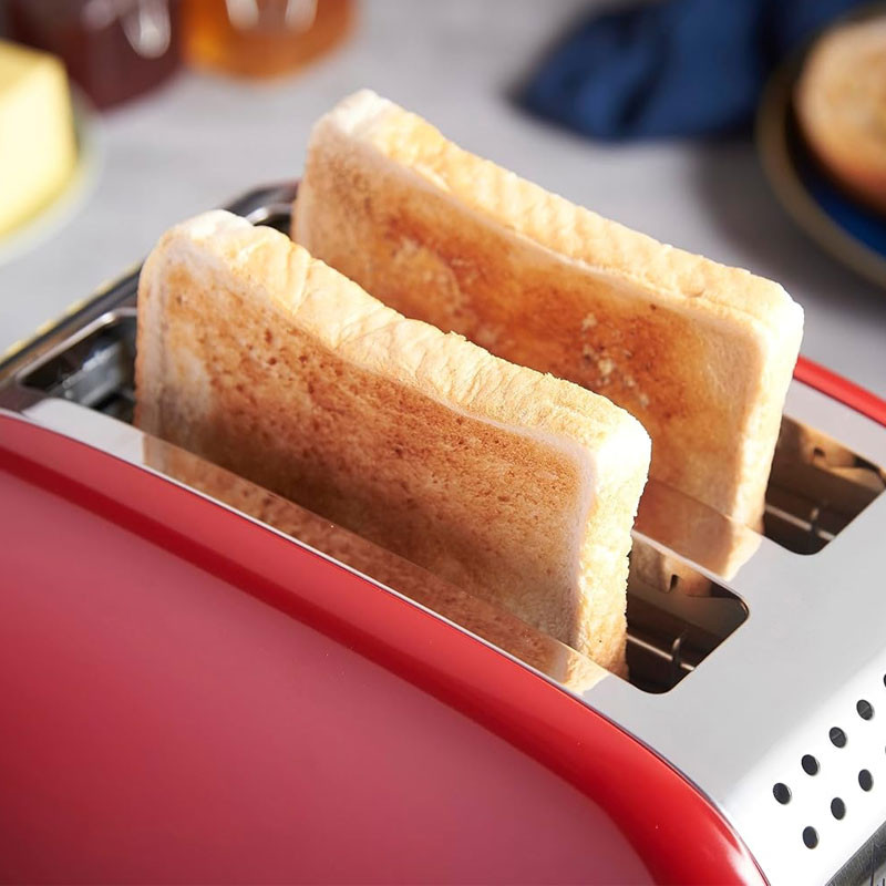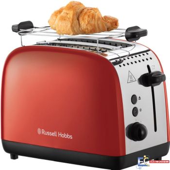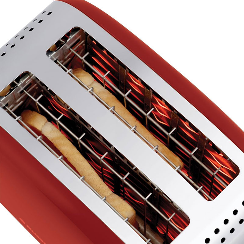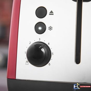 GRILLE PAIN RUSSELL HOBBS - Puissance : 1600W - 2x longues fentes - Niveaux de brunissage : 6 Niveaux - Fonctions décongélation, réchauffage et annulation - Fonction Lift and Look - Tiroir ramasse-miettes - Réchauffe viennoiserie - Fonction surélévation du pain - Couleur : Rouge - Garantie 2ans
