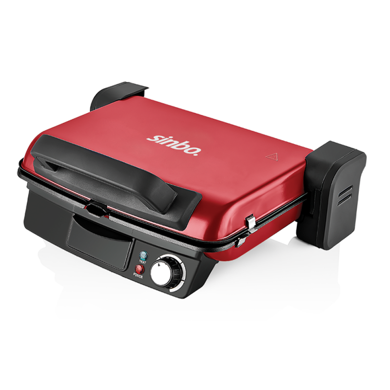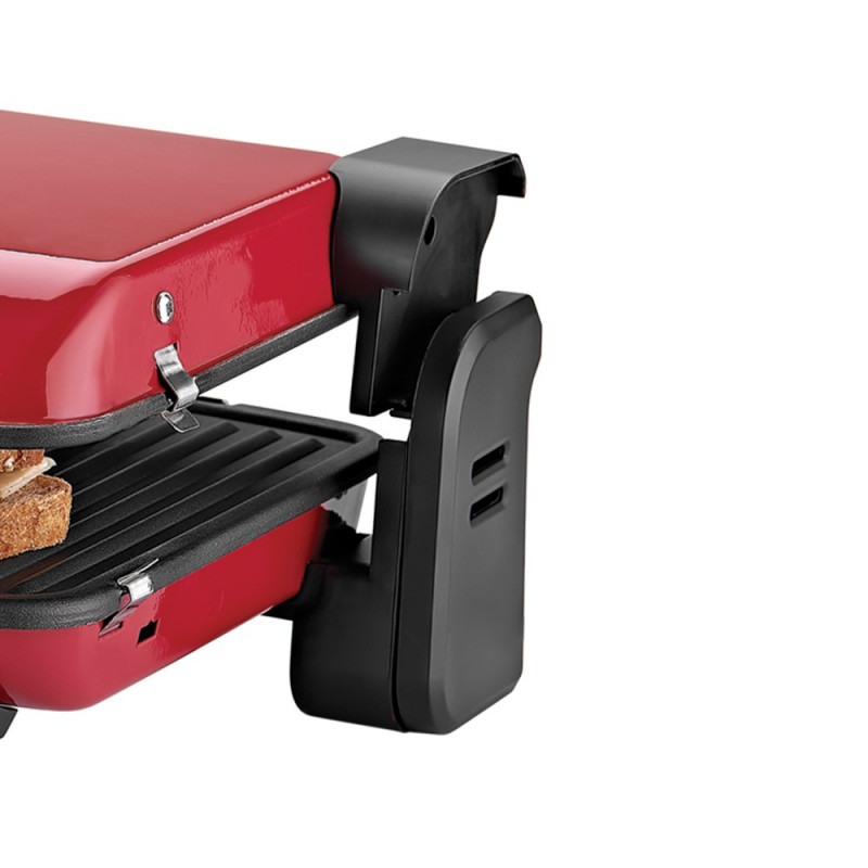 Grill panini / Sandwich - Puissance (W) : 2000 - Couleur Rouge - Surface de Cuisson : Cannelé - Réglage de la chaleur : Oui - Bac Collecteur d'huile : Oui - Capacité (Tranche) : 6 - Type de Plaque : Téflon antiadhésif - Plaque détachable : Oui - Fonction de Grille : Oui - Unité supérieure ouvrable à 180 ° : Oui - Épaisseur réglable d’aliment : Oui - Système d'interverrouillage : Oui - Garantie 1 an