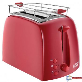 Grille Pain RUSSEL HOBBS - Puissance: 850 Watts - Capacité de grille-pain: 2 tranches - Voltage: 230 Volts - Finition inédite associant deux textures de Rouge: le givré & le brillant - Fentes larges – idéale pour tous types de pain - Fonctions décongélation, annulation & réchauffage - Bouton lumineux de fonctionnement - Couleur: Rouge - Garantie: 2 ans