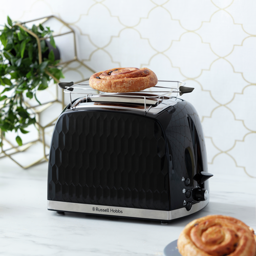 Offrez à votre cuisine un look tendance avec le grille-pain deux fentes Honeycomb de Russell Hobbs. Non seulement il aura fière allure dans votre cuisine, mais il vous offrira de multiples fonctions des plus pratiques. En effet, sa fonction de surélévation du pain permet de récupérer ses tartines sans se brûler et sa grille réchauffe viennoiseries est la solution idéale pour maintenir ses croissants au chaud.