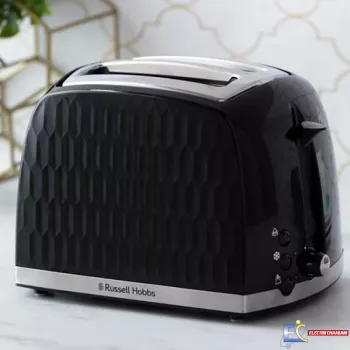 Grille Pain Russell Hobbs Honeycomb – Puissance: 850 W – Nombre de fentes: 2 – Fentes extra-larges – Idéales pour les pains et baguettes plus épais – Design premium avec des touches d’inox – Niveau de brunissage réglable – Fonctions décongélation, annulation, réchauffage – Tiroir ramasse-miettes amovible pour un nettoyage facile – Fonction de surélévation – Réchauffe viennoiseries – Couleur: Noir – Garantie: 2 ans