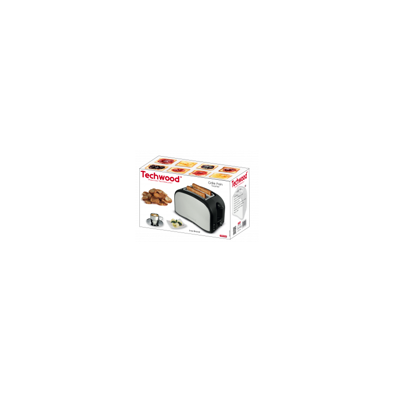 Grille Pain TECHWOOD - Puissance: 800 W - 2 large fentes - Fonctions : Décongeler - Réchauffer - Annuler - Contrôle du brunissage - Ejection automatique ou manuel - Tiroir ramasse miettes - Rangement du cordon - Alimentation : 220-240 V~ 50Hz - Couleur : Inox et Noir - Garantie : 1an