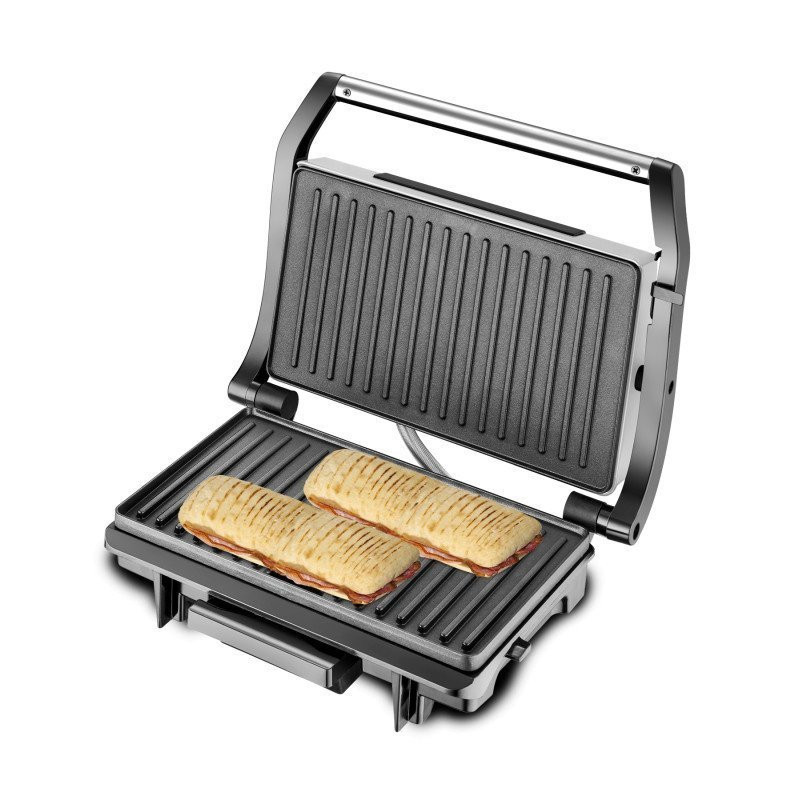 Puissance: 1500 W- Alimentation: 220-240V~ 50/60Hz- Contrôle de température automatique- Cuisson diététique- Bac récupérateur de graisse- Spécial Panini- Cuisson double face- Plaque anti-adhésive- Témoins lumineux- Système de verrouillage- Décor Inox- Couleur: Inox - Garantie: 1 an
