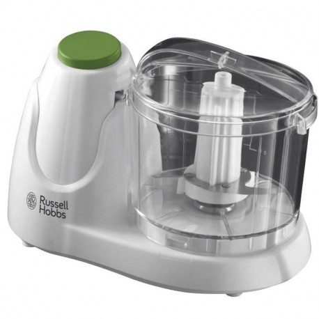 Hachoir Multifonctions RUSSEL HOBBS - Puissance: 70 watts - Capacité du bol: 500 ml - Lames amovibles en acier inoxydable - Niveaux de puissance: 1 - Matériel de bol: Plastique - Alimentation: 220 - 240 V - 50-60 Hz - Bouton de fonctionnement Pieds antidérapants - Couleur: Blanc - Garantie: 1 an