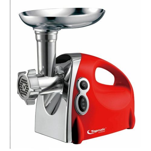 Hachoir à viande Topmatic MG-1200.3 - Puissance: 1200W - Capacité: 1.5Kg - Bouton marche arrière - Bouton marche / arrêt - Pieds antidérapants - 220-240V ~ 50Hz - Couleur Rouge - Garantie 1 an