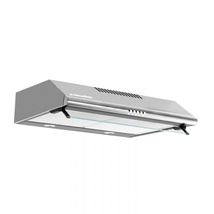 Hotte Casquette NEWSTAR - Largeur: 90 cm - Débit d'air: 480m³/h - 3 vitesses de filtrage - Nombre de Filtres: 3 - Filtre Aluminium Lavable - Tension: 220 / 230V 50 Hz - Filtre charbon pour le recyclage de l'air - Corps Inox - Couleur: Inox - Garantie: 2 ans