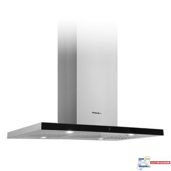 Hotte Centrale 120 cm Focus- Inox + vitro noir- Afficheur: numérique- Nombre de vitesses: 3 vitesses + 1 turbo- Touches sensitives- Débit: 1100 m3/h- Eclairage: 4 Spots LED x 3W- Filtres Inox- Filtre anti-odeur en charbon Optionnel- Classe énergétique: A- Diamètre évacuation: 150 mm- Couleur: Inox- Garantie: 2 ans
