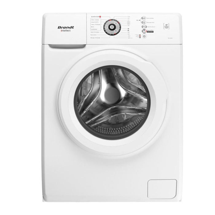 Lave Linge Frontal BRANDT - Capacité de lavage: 6 Kg - Consommation d'eau: 8699 L/An - Consommation d'électricité: 132 KW/An - Vitesse d'essorage: 1200 tr/min - Classe énergétique: A+++ - 9 Programmes - Gamme Intellect - Easy Start - Alimentation: 220-240 - 50 hz - Niveau sonore au lavage: 60dba - Niveau sonore à l'essorage: 77dba - Dimensions: H x L x P: 847 x 597 x 608 mm - Poids: Brut: 58kg , net: 58.5 kg - Couleur: Blanc - Garantie: 2 ans