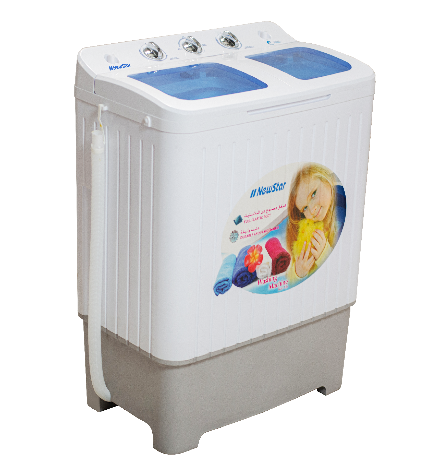 Machine à Laver Semi-Automatique NEW STAR - Capacité: 8 Kg - Capacité Essorage: 6,5 Kg - Programmes de Lavage: Rinçage Séparé, Vidange d'eau au lavage et essorage - Puissance moteur: 420 Watts Lavage / 170 Watts Rinçage - Tension: 220V, 50/60 Hz - Poids: 19 Kg