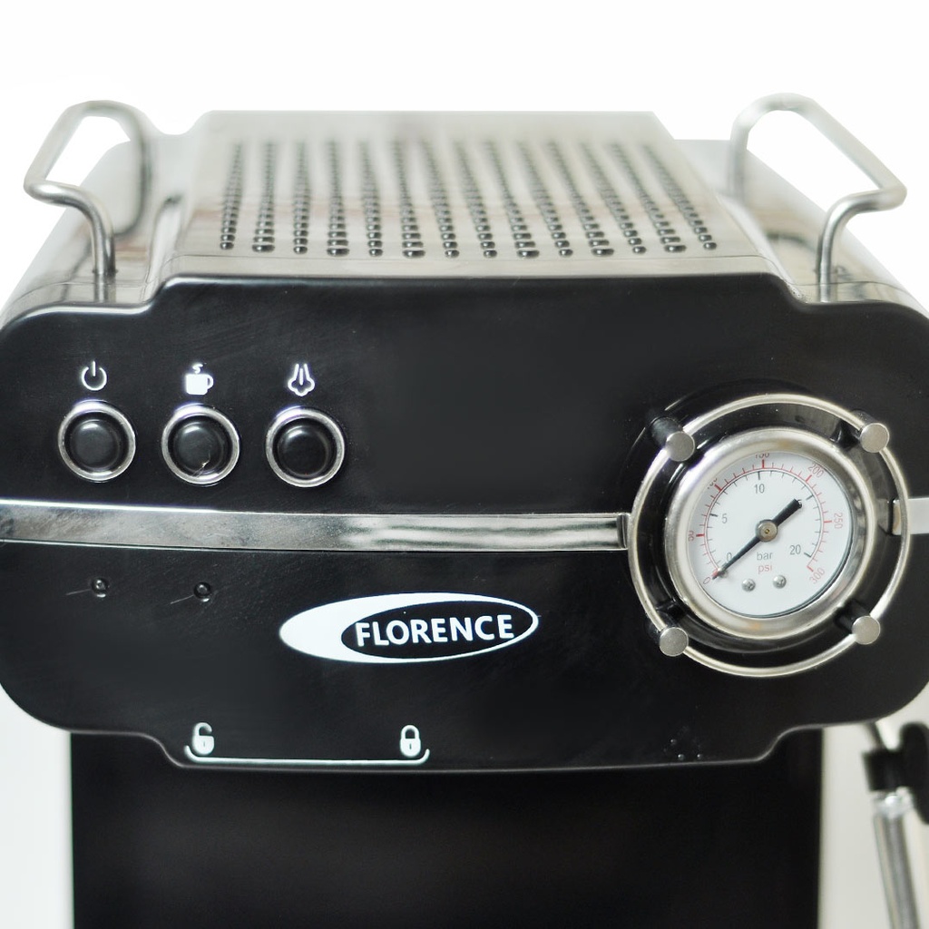 Marque : Florence - Puissance : 1050 W - Pompe à pression : 15 bars - Tension : 220-240V / 50-60 HZ - Réservoir d'eau transparent détachable : 1,5 L - Type de filtre : acier inoxydable - Type de cafetière : Machine à Espresso et Cappuccino - Tête panatela réglable pour mousseux - Bac d'égouttage amovible - Réservoir d'eau amovible - Pompe à pression de haute qualité - Garantie : 1 an