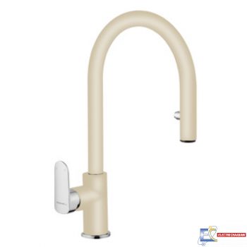 - Mitigeur champagne avec douchette - Un corps de robinetterie au design marquant - Levier de commande long et ergonomique - Col haut pour faciliter le remplissage de récipients volumineux - Douchette escamotée dans le bec, d