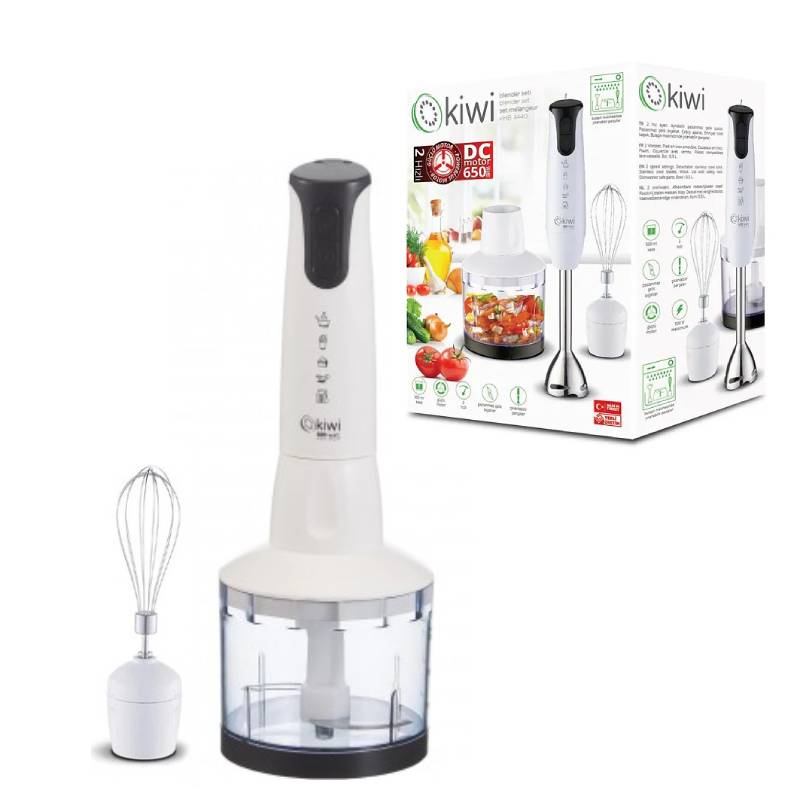 Mixeur Plongeant KIWI 3en1 - Puissance: 500 Watts - Capacité de Bol: 0.5 Litre - Nombre de vitesses: 2 vitesses - Corps en Plastique - Pied détachable en inox - Lame en acier inoxydable - Fouet adaptable - Couvercle avec fermeture de sécurité - Accessoire démontable pour un rangement- Convient pour lave-vaisselle - Couleur: Blanc - Garantie: 1 an