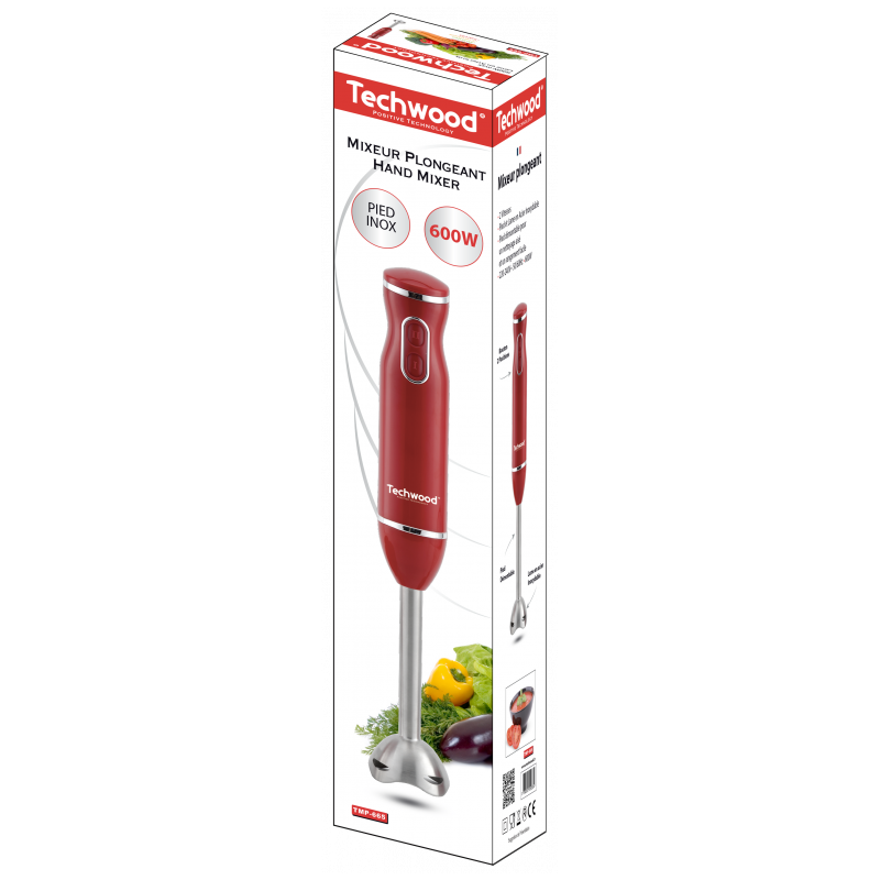 Mixeur Plongeant Techwood TMP-665 - Puissance 600W - 2x Vitesses - Pied et Lame en Acier Inoxydable - Pied et Lame en Acier Inoxydable - Pied démontable pour un nettoyage aisé et un rangement facile - Garantie 1 an