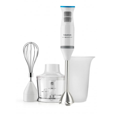 Puissance : 1000 Watts - Moteur haute performance - Régulateur réglable à 20 vitesses - Fonction TURBO pour une puissance maximale - Système de rotation turbo. Système de circulation alimentaire amélioré - Lames hautes performances en acier inoxydable à double effet : barattage et écaillage Pic à glace - Conception ergonomique avec prise en main douce au toucher - Montage facile de la tige et des accessoires - Tige en acier inoxydable haute résistance - Conception de la hotte anti-éclaboussures - Blender et accessoires sans BPA - Comprend un ensemble complet d'accessoires : gobelet doseur 500 ml, hachoir 350 ml et émulsifiant Lave-vaisselle