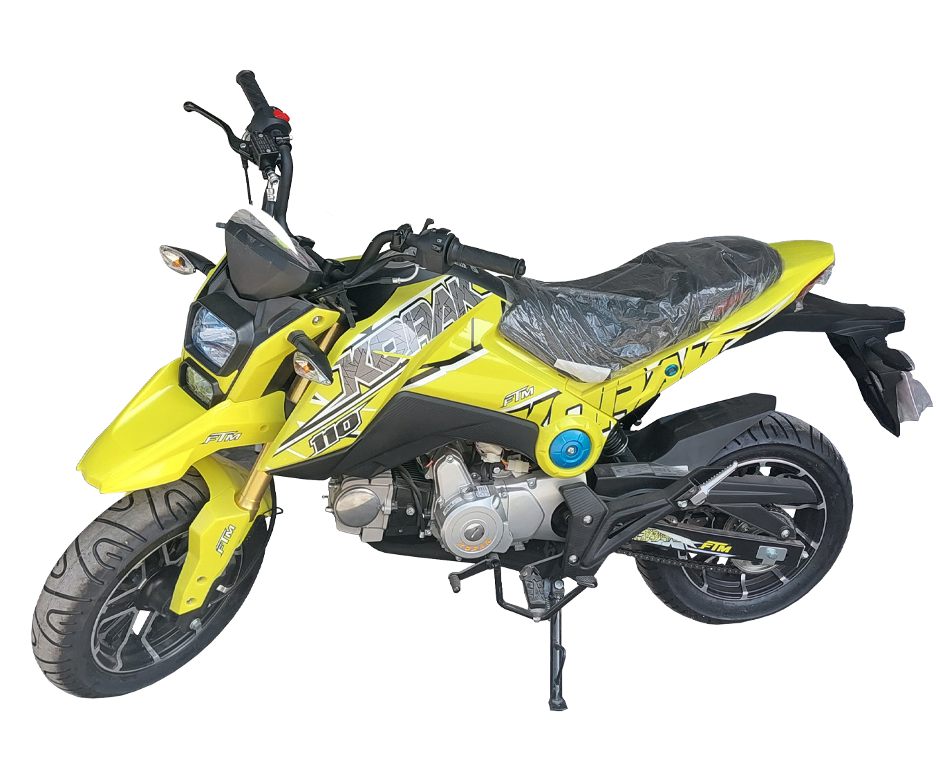 Moto Cross FTM- KORAK Blanc - Réservoir: 3,9 litres - Type de Moteur: 4 temps Refroidissement Air, Cylindrage: 110cc - Vitesse maximale: 120 km / h, Type de frein: AV / Disque AR / Disque - Couleur: JAUNE