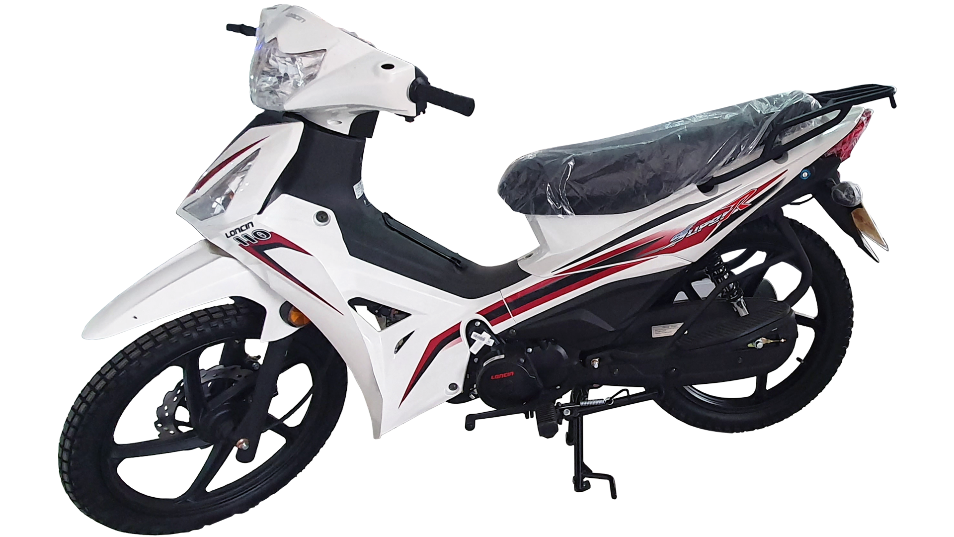 Moteur Type de moteur : Monocylindre, 4 temps, refroidi par air - Déplacement : 110.0cc - Alésage x course : 52,4 × 49,5 mm - Ratio de compression : 9.1:1 - Puissance maximum : 7.4hp (5.5kw)/8000tr/min - Couple maximal : 6.5Nm/5500-6000tr/min - Méthode de démarrage : Électrique / coup de pied - Système de mise à feu : CDI - Ralenti : 1300 tr/min - Capacité d'huile moteur : 0,8 L - Transmission - Système de transmission : 4 vitesses - Transmission finale : Chaîne - Dimensions et poids - Taille globale (L×W×H) : 1875mm×675mm×1095mm - Empattement : 1230 millimètres - Hauteur d'assise : 755 millimètres - Garde au sol : 135 millimètres : Poids sec : 93kg - Charge maximale : 150 kilogrammes - Capacité du réservoir de carburant : 3,5 L - Roues et freins - Taille du pneu avant : 2.50–17 - Taille des pneus arrière : 2,75–17 - Frein (avant/arrière) : Disque / Tambour - La batterie : 12V 5AH
