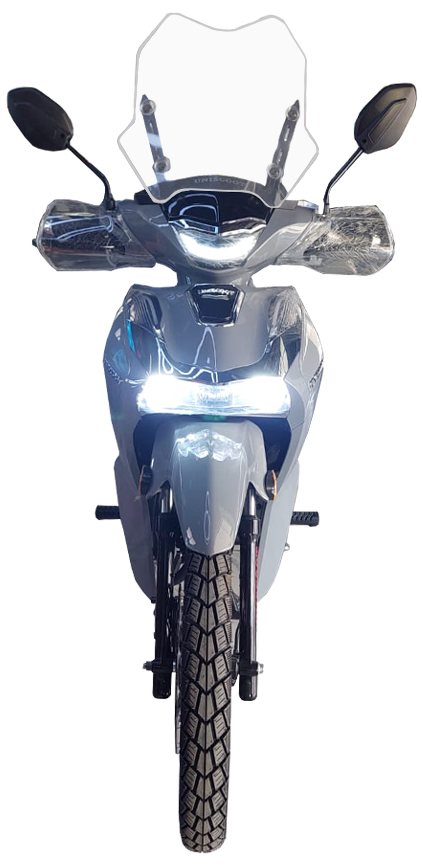 Moto UNISCOOT Tiger - Moteur: 125 cm³ 4 temps - Vitesse Maximale: Digital 140 km/h - Transmission: 4 Vitesses - Pneus: 2.5/17 et 2.75/17 - Freins à disque avant et arrière - Avec alarme - Dimensions: 1950 x 650 x 1100 mm - Couleur: Gris - Garantie: 5000 KM