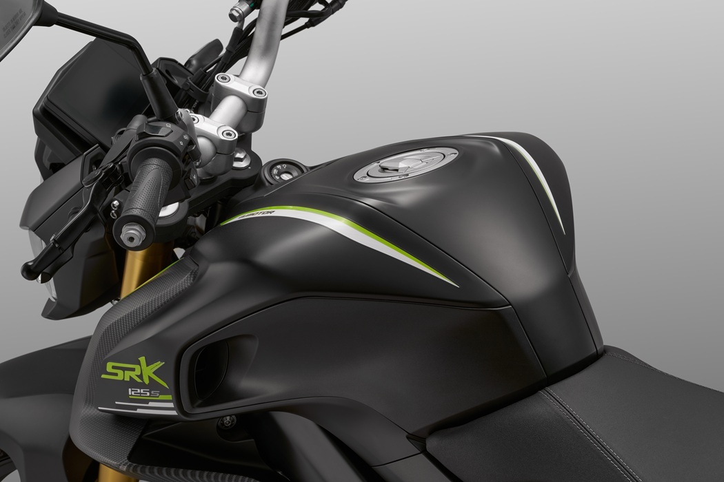 The SRK 125 S chassis consists of a deltabox frame in combination with an upside-down telescopic front fork, offering purely sporty but also comfortable riding characteristics. The rear suspension is provided by a central rear shock absorber (monoshock), which easily handles riding solo or with a passenger.