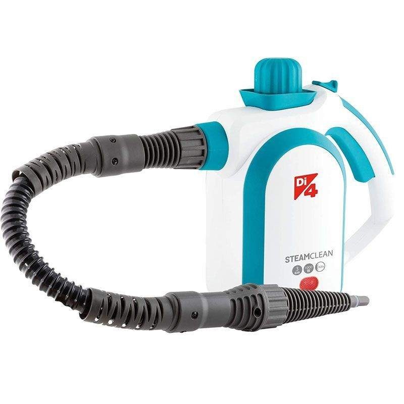 Nettoyeur à vapeur Di4 SteamClean - Puissance: 1050 W - Grande pression de vapeur: 3 bars - Prêt en 3 minutes - Capacité du réservoir d’eau: 0.35 L - Autonomie jusqu'à 12 minutes - Extension flexible - Brosse avec un chiffon pour les petites et délicates pièces - Pointe de précision et brosse pour duretés - Accessoire de nettoyage pour vitre - Pointe coudée pour les zones difficiles - Tasse à mesurer - Entonnoir - Garantie 1 an