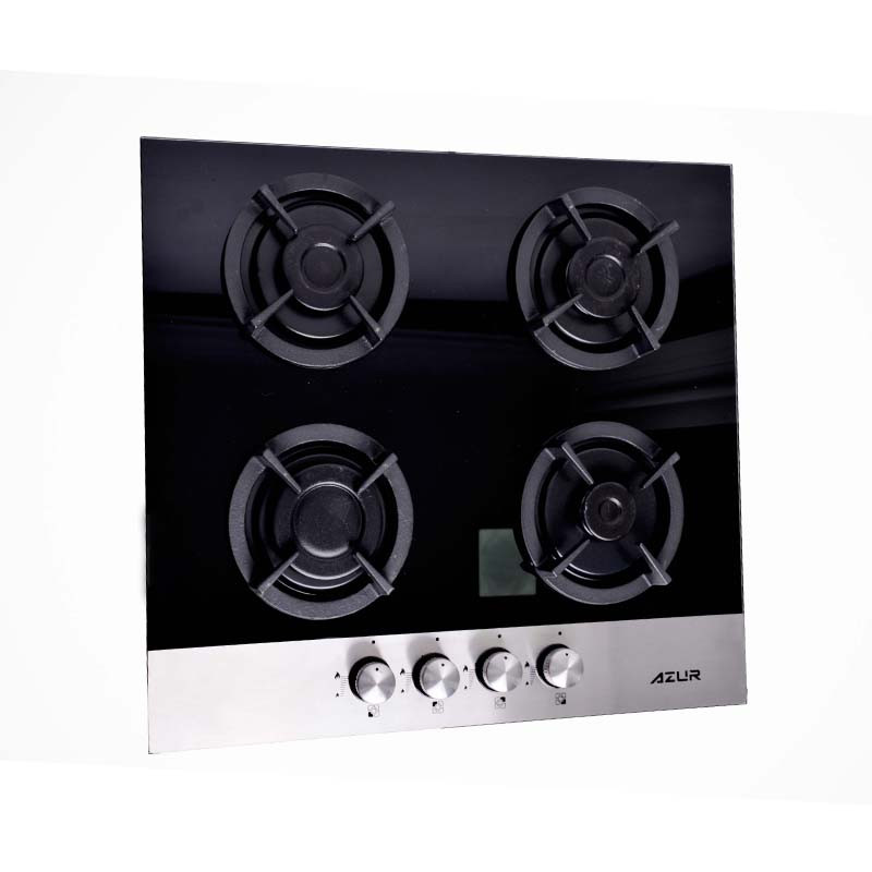 Plaque de cuisson Azur - Nombre de feux: 4 feux - Largeur: 60cm - Type: à gaz - Brûleur rapide - 2x Brûleurs semi-rapides - Petit brûleur - Commandes frontales - Allumage automatique - Couleur: Noir - Garantie 1 an
